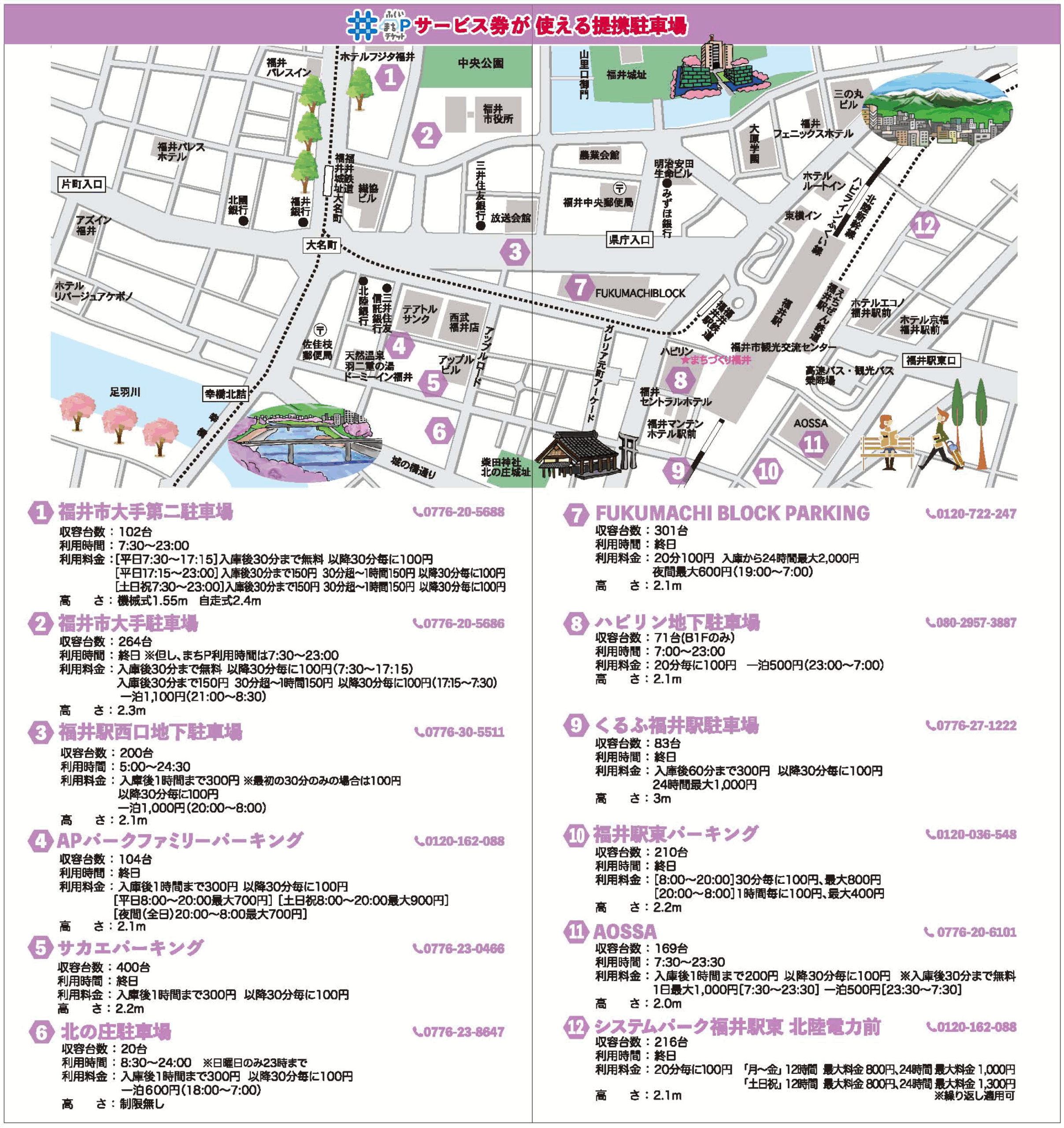 お車で来街の際は、ふくいまちPチケットを是非ご利用ください。